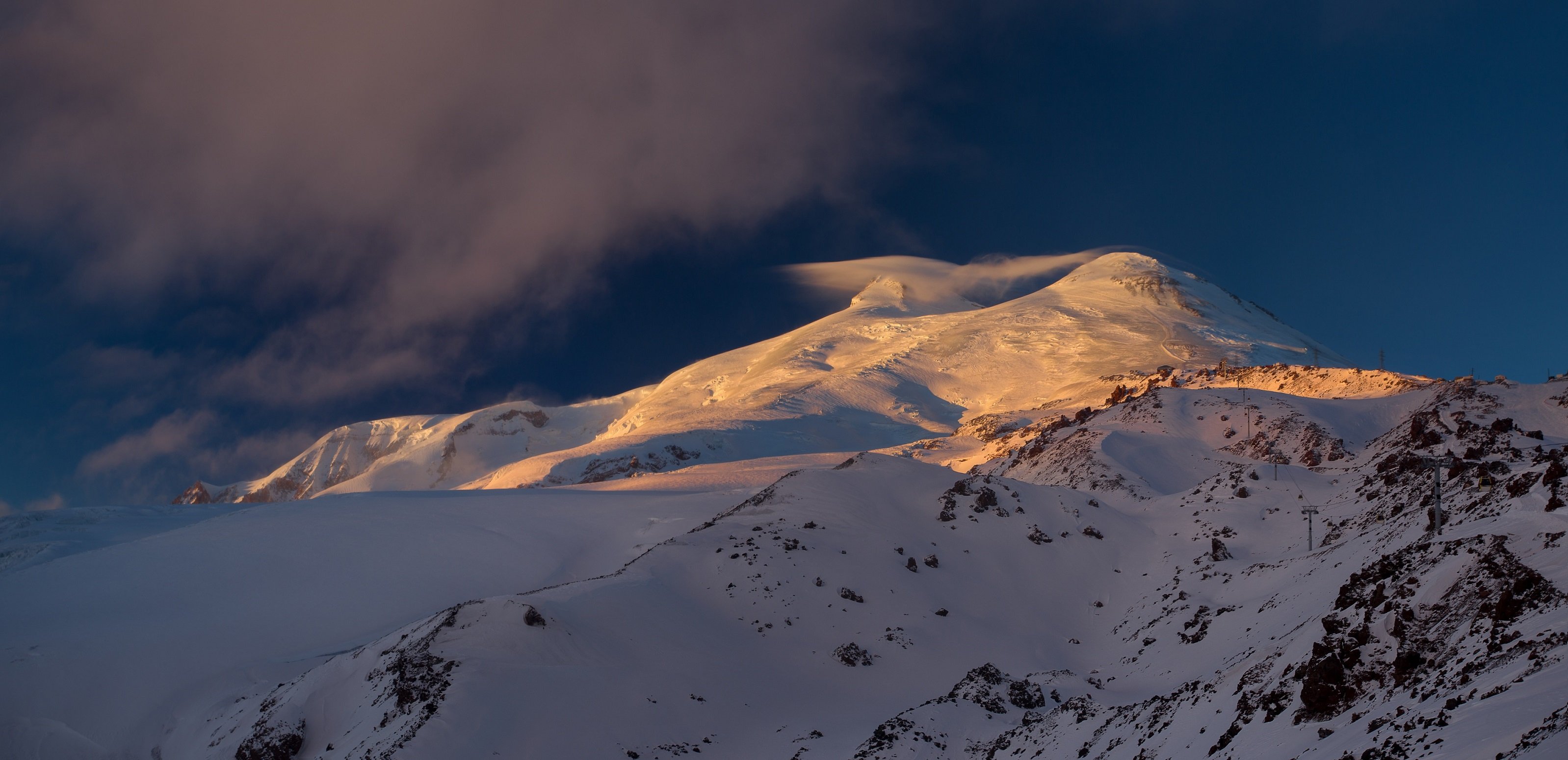 Эльбрус, Кавказ, горы, снег, закат, облака, Павел Попов