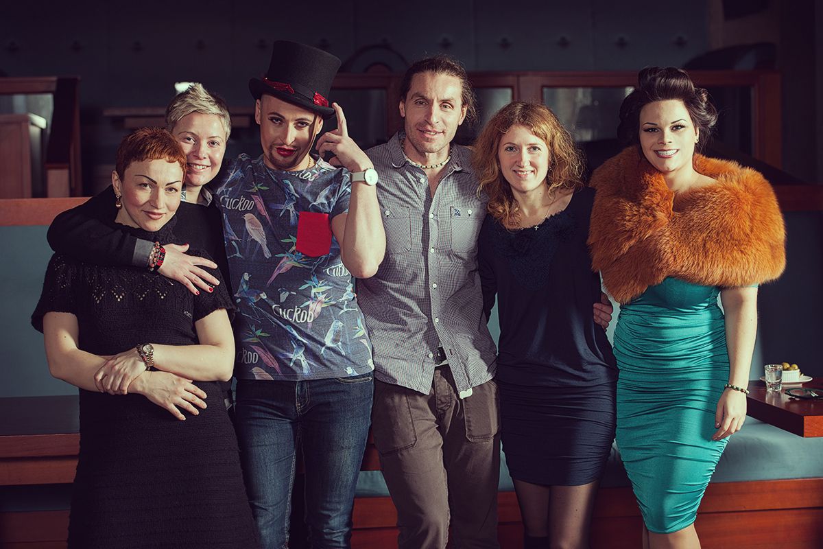 Фотограф – Ленин. Идея и стиль, создание образов – Валерия Малиновская. Визаж – Лилия Лобанова, Надежда Борисова. Продюсер и координатор съемки – Мия Зарринг. Локация – ресторан «Сплетни».