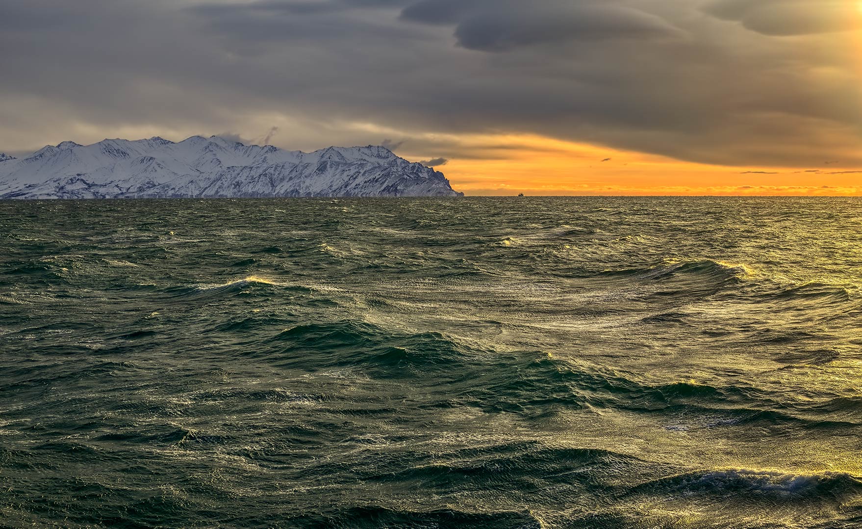 волны, охотское море, судно, тучи, утро, восточный берег, Евгений Паршуков