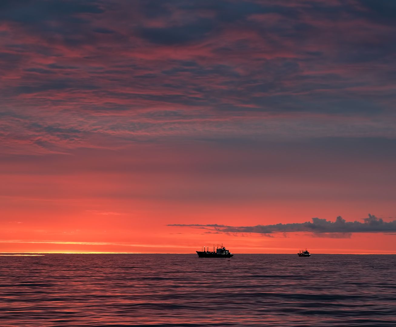 август, закат, судно, тихий океан, Евгений Паршуков