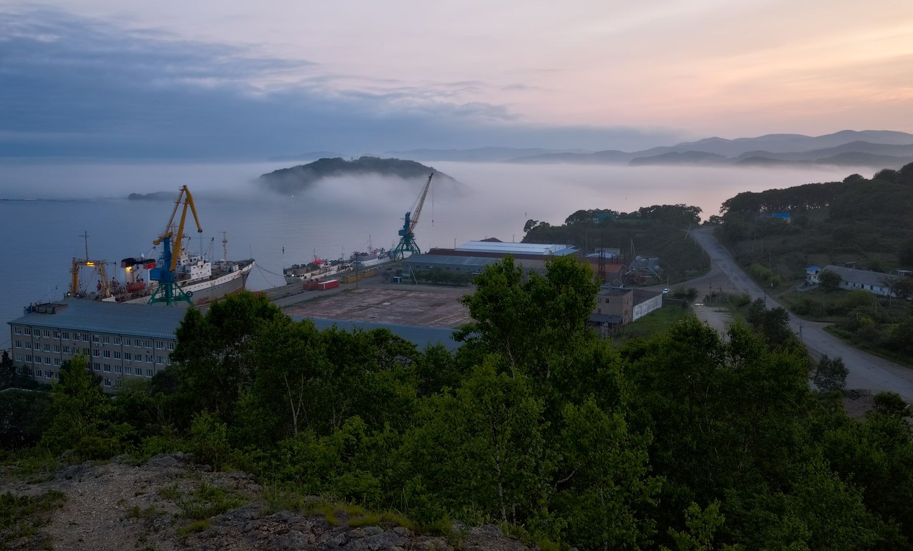 приморье, преображение, вечер, порт, лето, остров, туман, батм, Евгений Паршуков