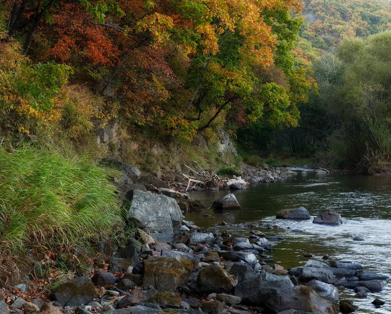осенний, берег, река партизанская, приморье, осень, Евгений Паршуков