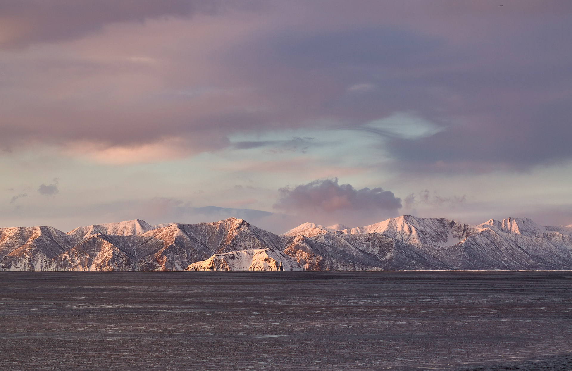 берингово море, берег, скалы, зима, идёт циклон, вечер, камчатка, Евгений Паршуков