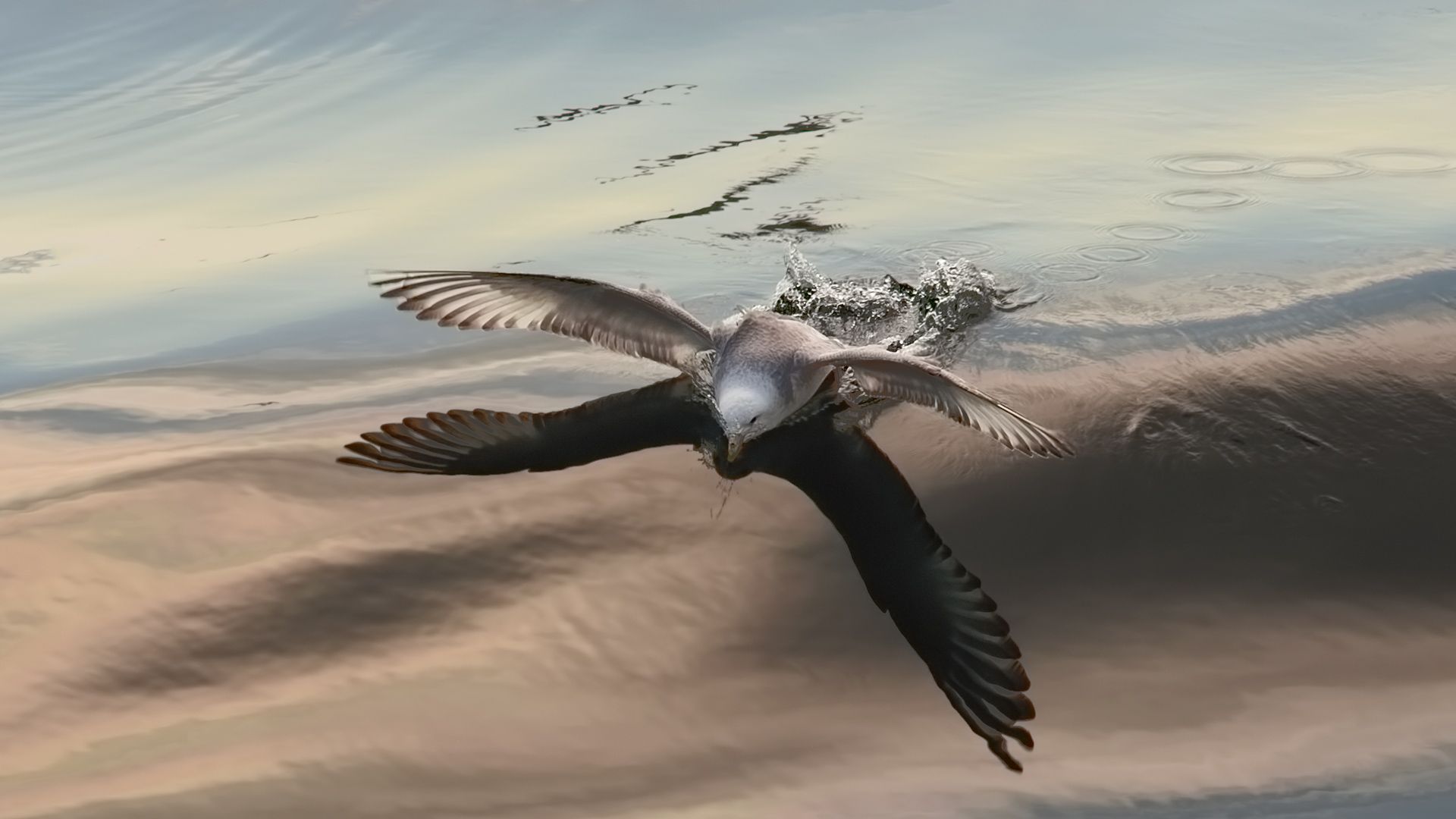 охотское море, посадка, чайка, апрельский штиль, Евгений Паршуков