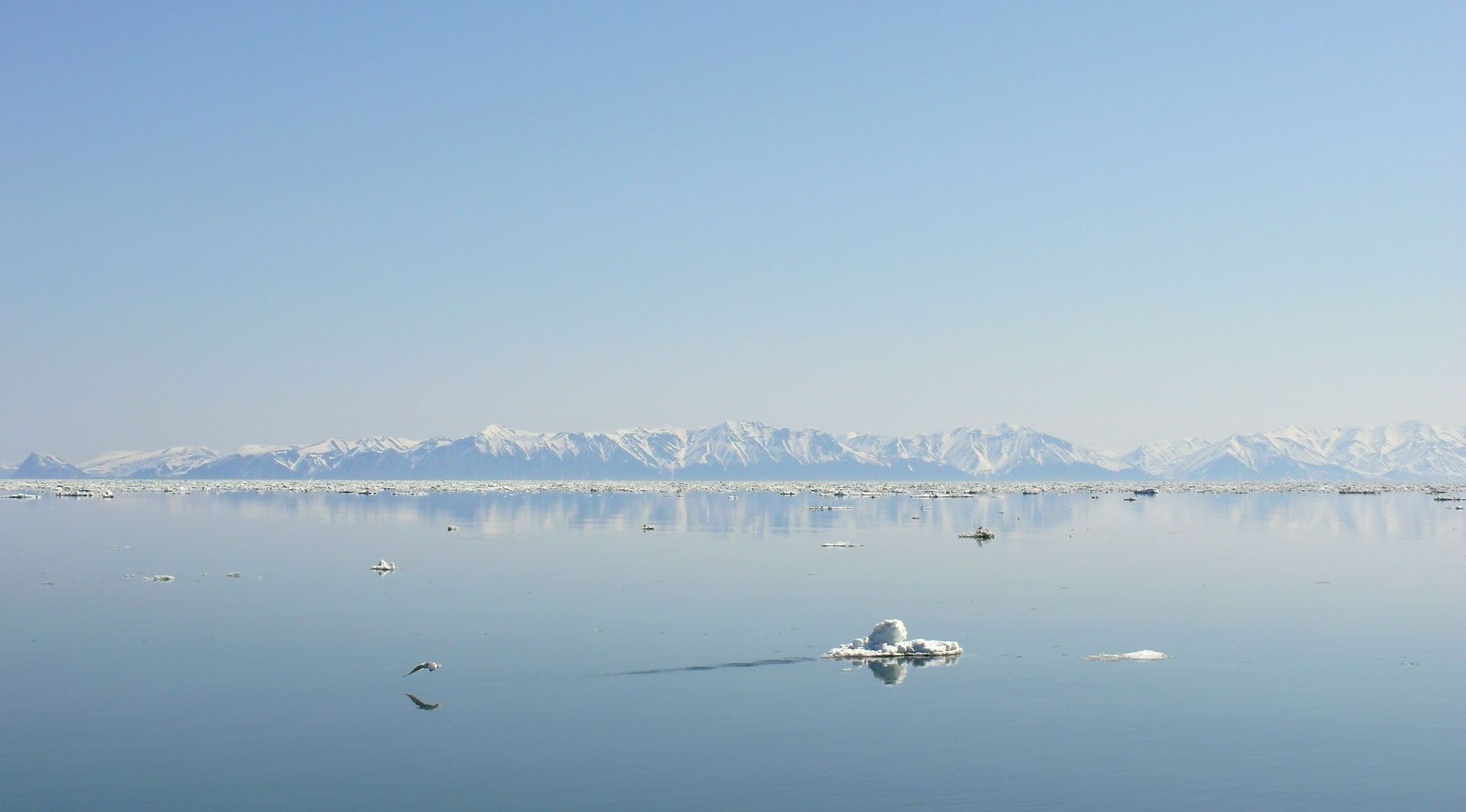 охотское море, штиль, весна, скалы, берег, лёд, Евгений Паршуков