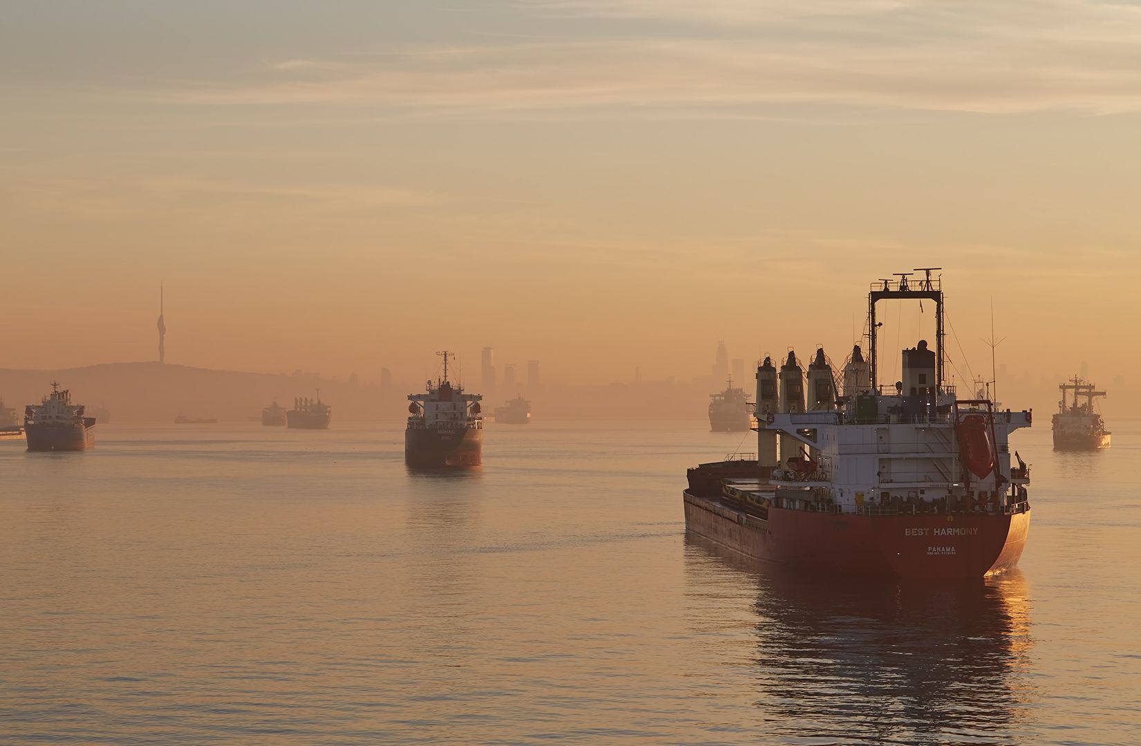 турция, утро, рейд, туман, судно, берег, стамбул, Евгений Паршуков