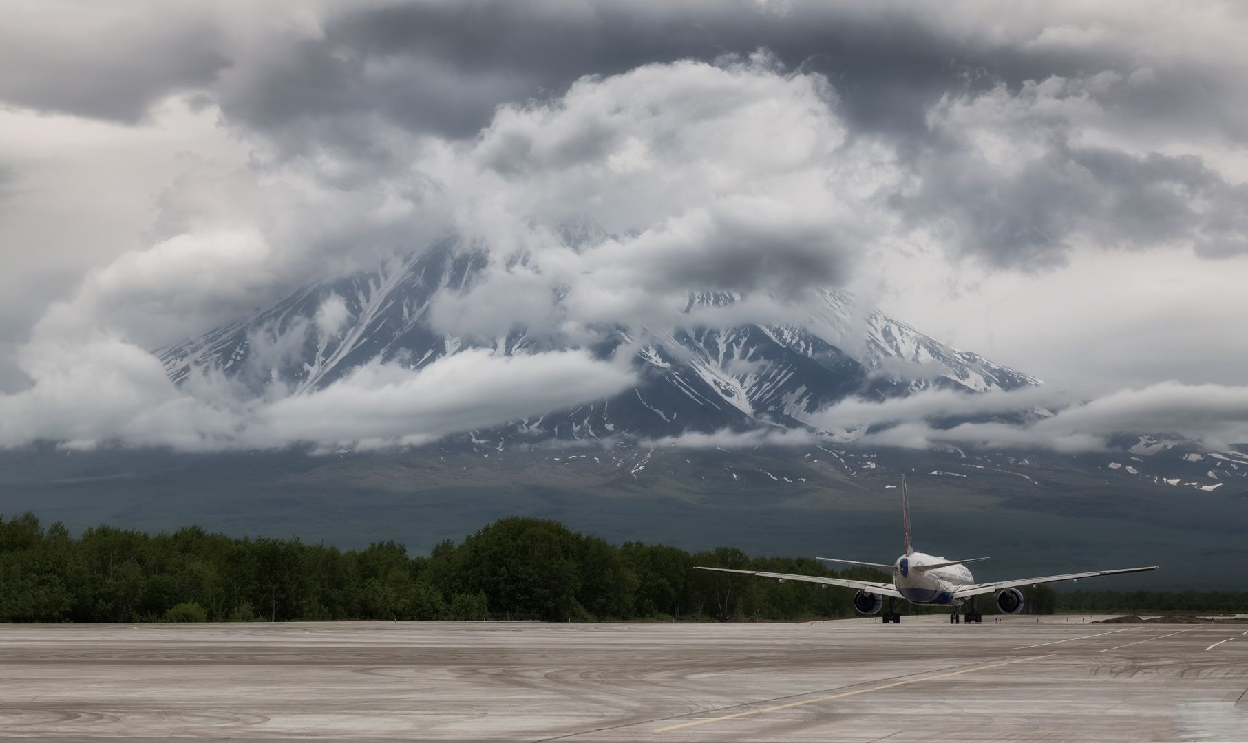 аэропорт елизово, камчатка, лето, вулкан, самолёт, тучи, взлётная полоса, Евгений Паршуков