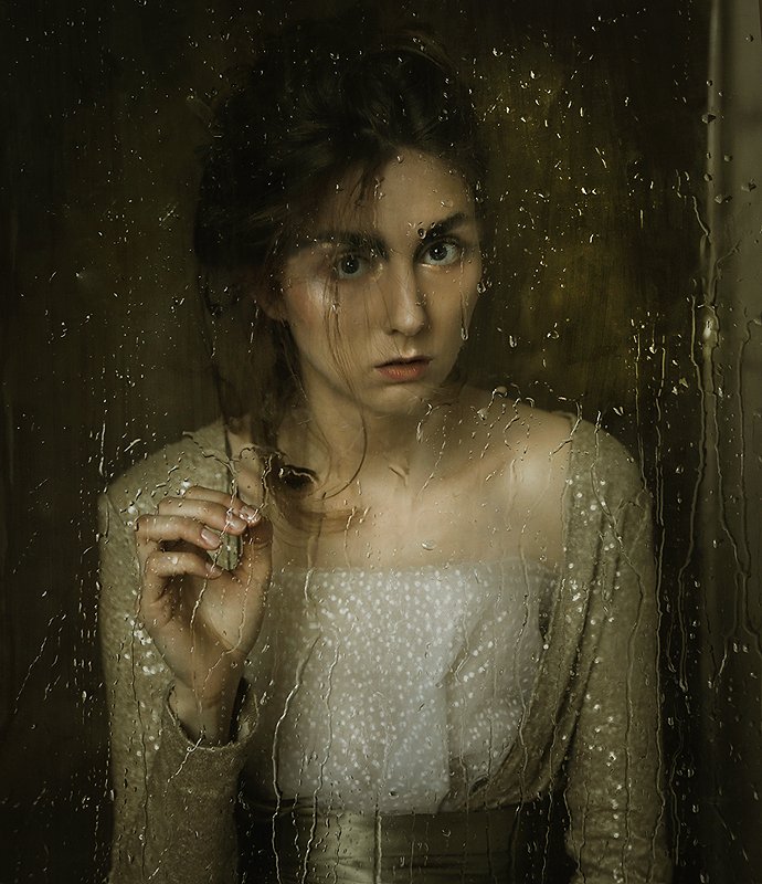 Девушка, портрет, жанровый портрет, люди, человек, глаза, руки, губы, выражение, стекло, окно, капли, дождь, цвет, свет, лицо, фото, новое, интересное, модель, комната, Постонен Екатерина