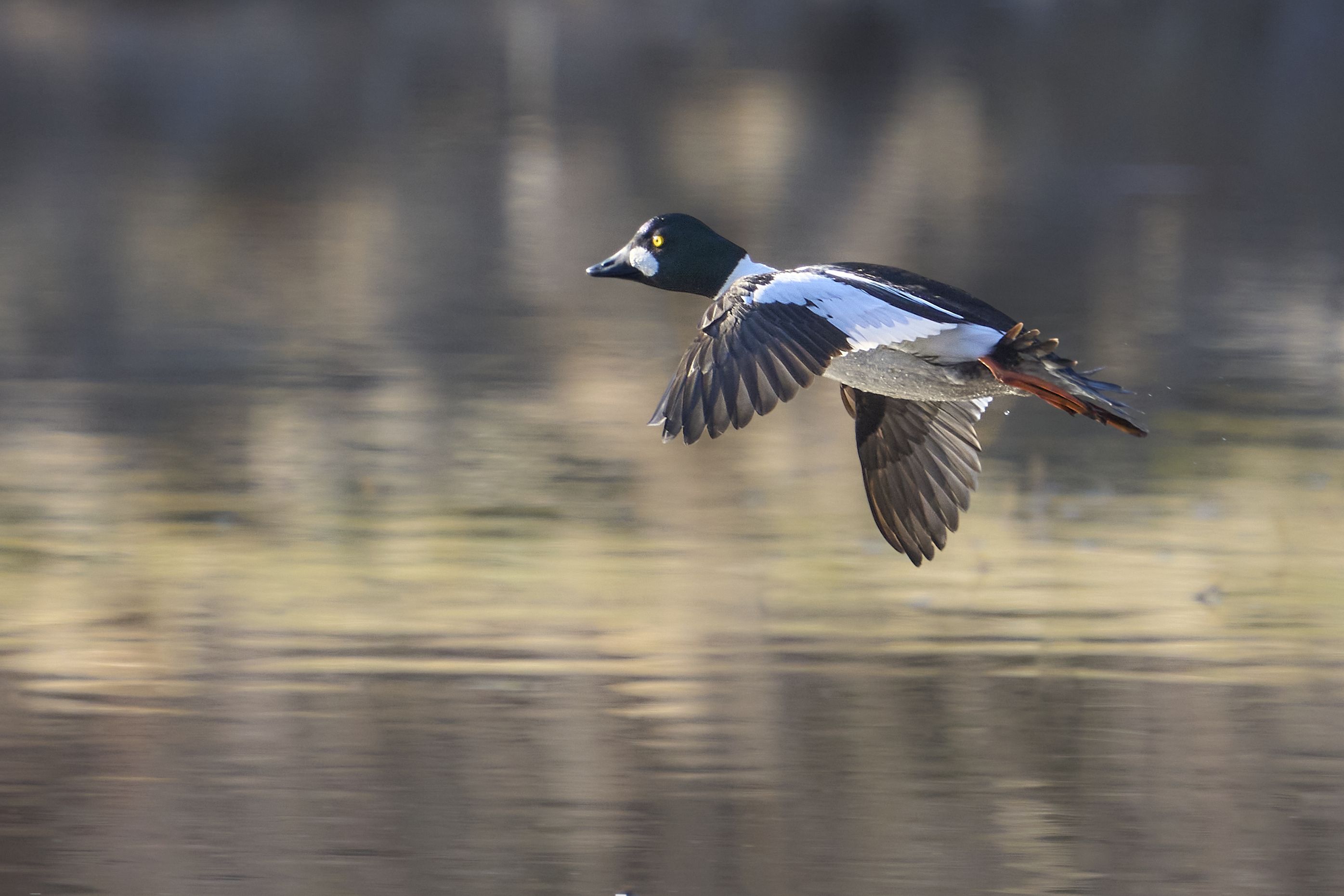 Nice action shot of the Goldeneye. The background blur works well here, keeping the focus on the bird in flight. Just watch the exposure on those white feathers—they’re starting to lose detail. Good work. 📸