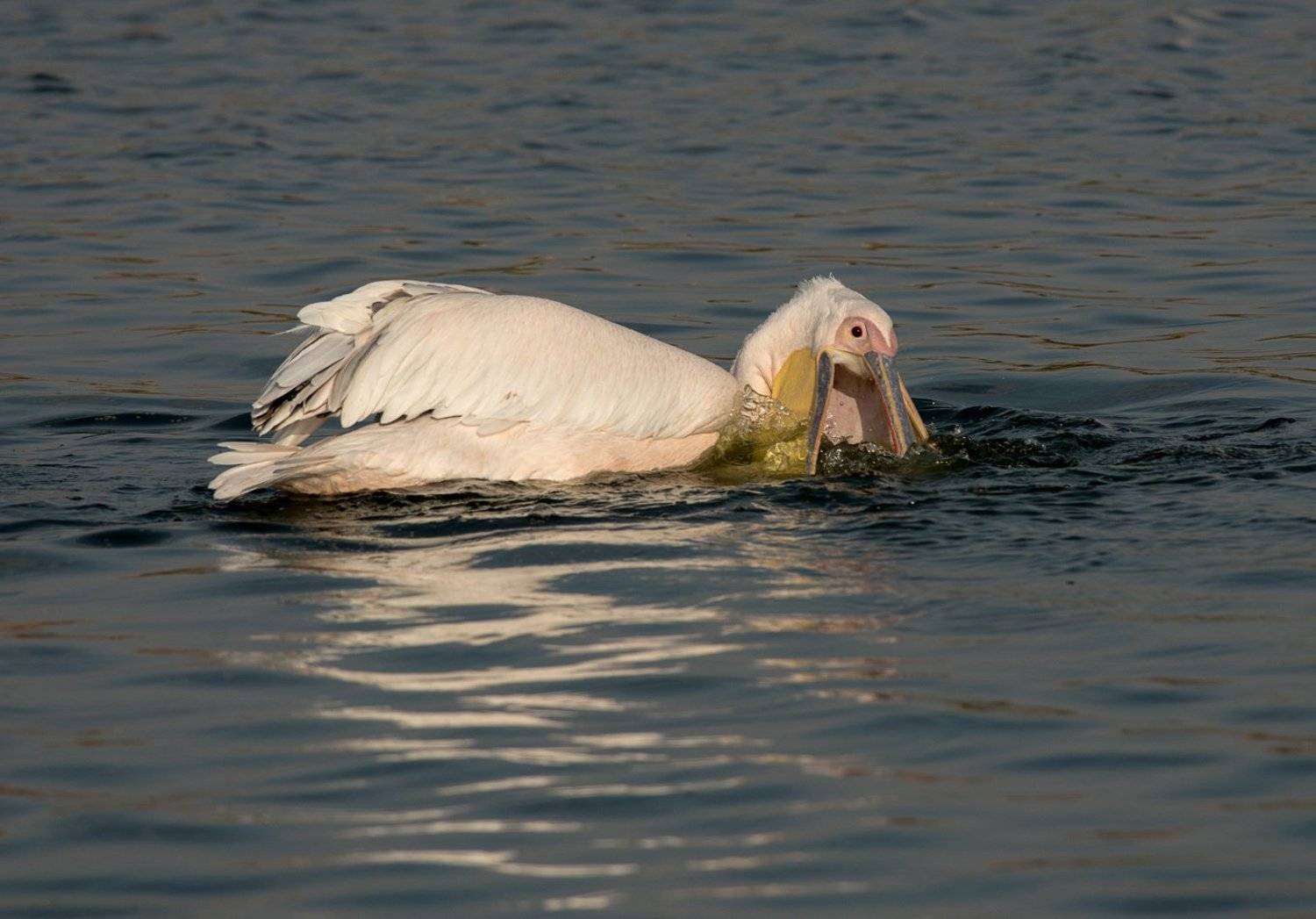 Каждый год тысячи птиц пролетают над нашей страной по дороге в Африку. Стая пеликанов остановилась подкрепиться и отдохнуть.