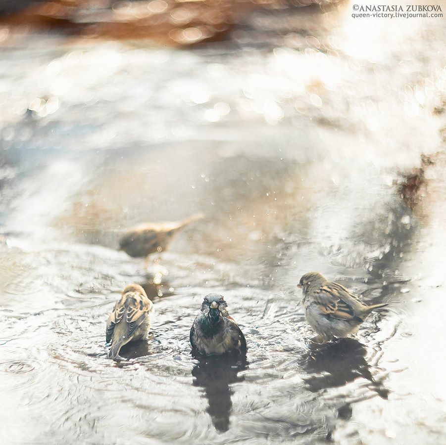 Как воробушки купались