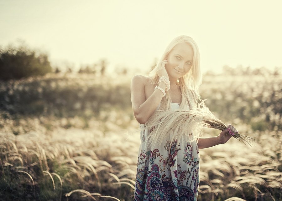 девушка, портрет, поле, ковыль, свет, Ростислав Росицкий