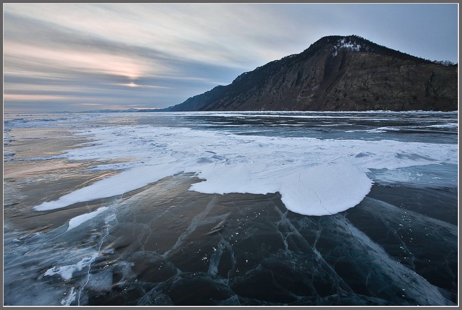 Где-то в середине марта,лёд ещё стоит конечно-же,но появляются трещины,по которым опасно уже ездить на авто(закрываются официальные ледовые переправы).В апреле,весь лёд,начинает ломаться.Последние,отдельно плавающие льдины,можно встретить ещё и в начале июня.Конечно-же и там как и во всей природе,бывают всякие нюансы и исключения.