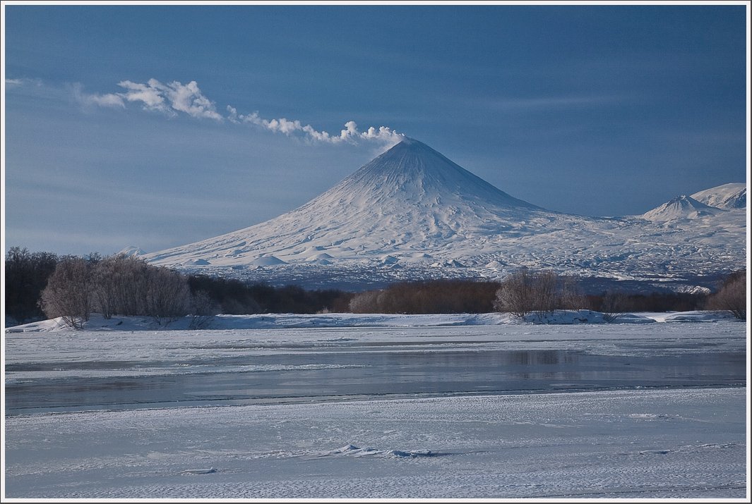 Роман справа,ничего интересного нет,поварачивать вправо обьектив не было смысла так-как газовое облако котогое уходит влево вершинного извержения,совсем ушло бы,да и снимать на более широком угле особого смысла не имело. Так,зимняя Камчатская открыточка,не более того:)