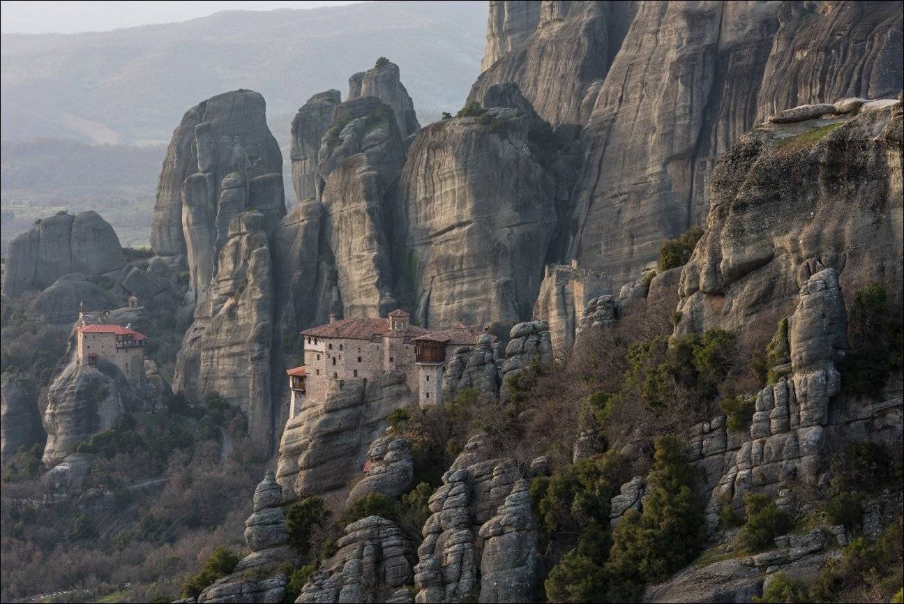 Греция, Метеоры и пара кадров в радиусе 95 км от них. Снято в конце февраля 2017 года. Мы приехали на Метеоры в ночном дожде, но как оказалось позже, это хорошо. Дело в том, что скальные образования Метеоры круглый год стоят серыми и только после дождя их замшелая поверхность становится зелёной. Так что через два дня зелёный кайф исчез.