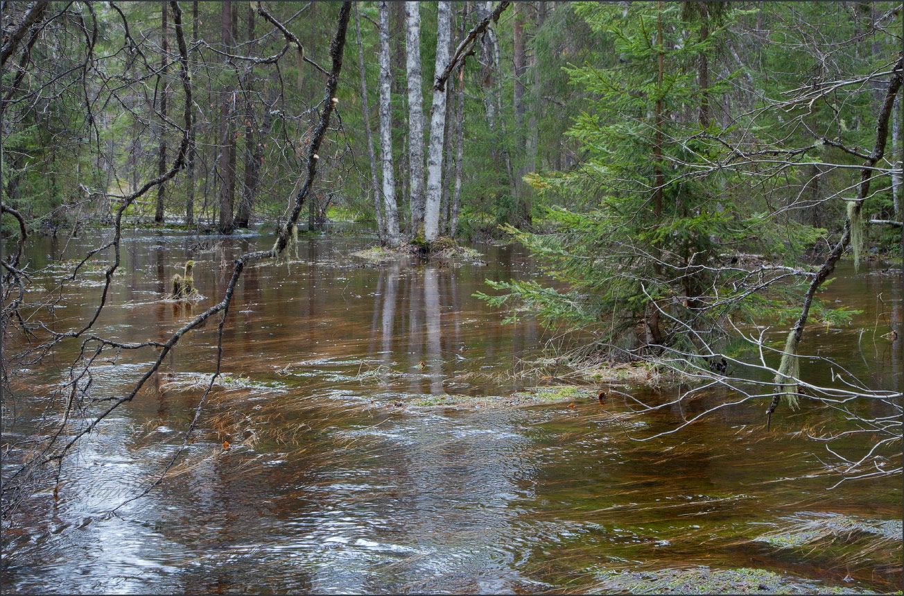 Некоторые моменты из жизни леса Русского Севера. Это время, когда почти весь снег сошёл и лесные ручьи стремительно поднимают уровень воды в озере. Съёмка 2009 года.