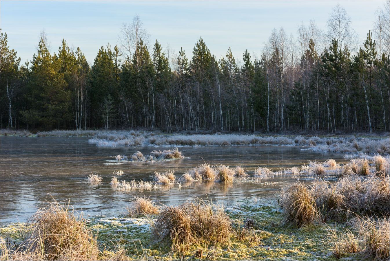 Седые травы торфяников,словно, шлемы воинов на берегу, а цвет их подобен матовому серебру.
