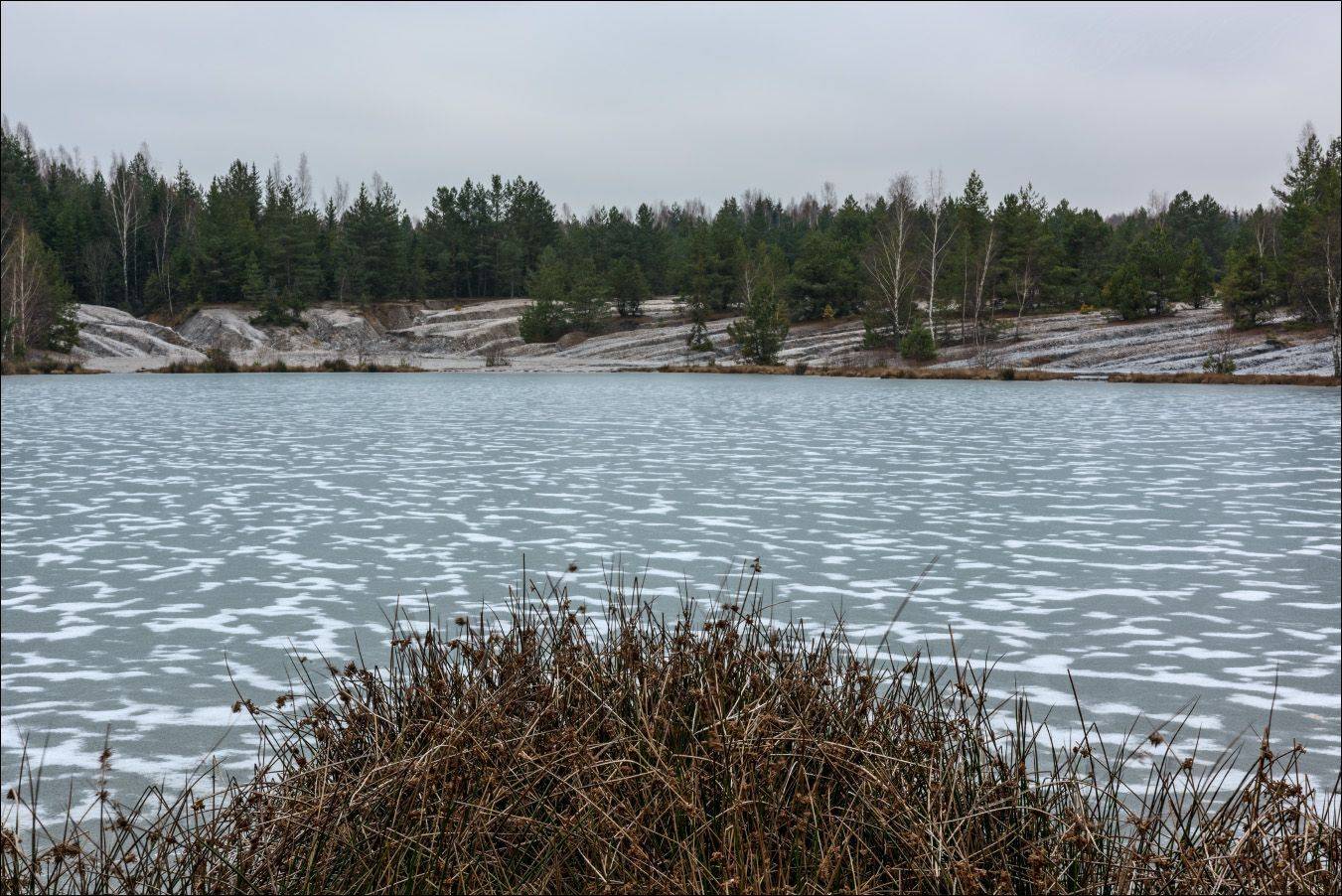 Тульская область, ноябрь 2020 года. Это удивительное состояние природы для меня стало полной неожиданностью, поскольку ни где, по дороге из дома в деревню, я не заметил подобного явления. Да и утро было пасмурным, и ни чего не обещало. А тут, вдруг, такой каток, навернуться с аппаратурой - как нечего делать. А ночью пошёл обильный снег, так что и следа не осталось от этого состояния.