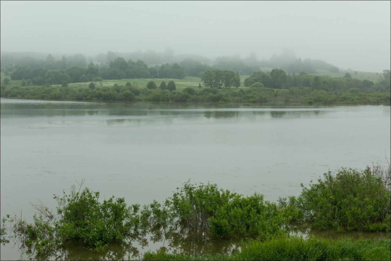 Плотный туман укутал на рассвете всю округу и не дал пробиться солнцу до начала дня. В таком состоянии природы даже на открытых местах возникает ощущение камерности и однотонности окружающего мира.