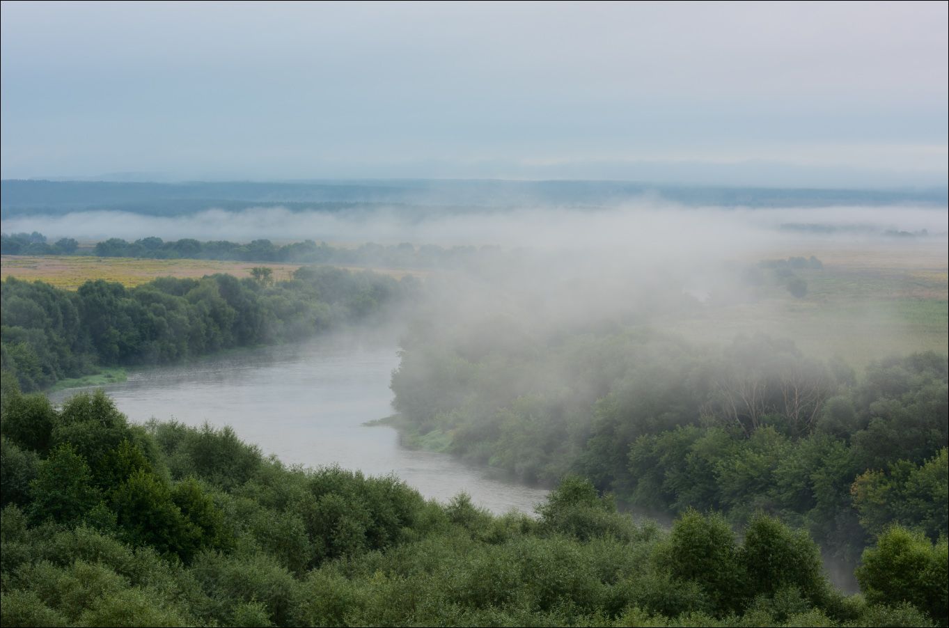 Тульская область в августе прошлого года. Каждый раз, приезжая на это место, ожидаешь чего-то необычного, и эпизодически оно происходит. Во время съёмки не всегда даже осознаёшь необычность состояния, а вот потом, имея возможность сравнить с тем, что снимал раньше, понимаешь, что не всё так просто, и такого ещё не было. Давно хочу выложить в одну подборку разные состояния с одной точки, а таких точек и состояний накопилось не мало. Но это зимой, когда будет время покопаться в архиве. Здесь же, восход запылал где-то за облаками, оставив в тени долину реки, а когда "выключили цвет" состояние и настроение сильно поменялись.