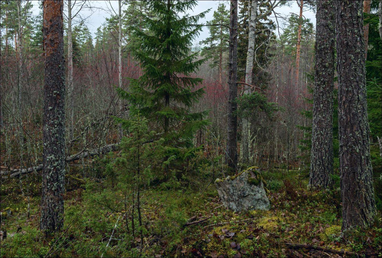 Начало ноября прошлого года. В районе шхер леса в Карелии труднопроходимые и таинственные. Есть, конечно, и очень милые участки, но о них в другой раз. Поездка была всего на пару дней, и погода была не очень радостной, но на то и ноябрь. В первый день солнышко показалось сквозь дымку, и на том спасибо. А потом начался неуютный ветер, характерный для Ладоги в это время. За это короткое время Карелия в меня много вложила разных ощущений. Их я и пытаюсь передать, компонуя по разным подборкам. Эта подборка точно не для тех, кто любит красивенькоё и красочное, но и драматизировать я не собираюсь, оставляя пространство для воображения потенциальному зрителю.