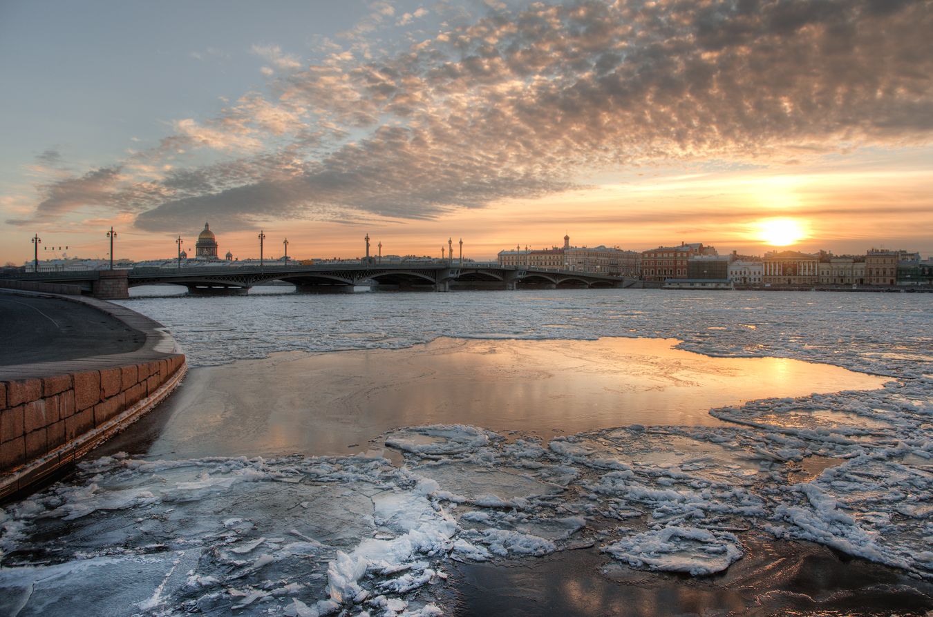 Морозное утро на набережной лейтенанта Шмидта. Санкт-Петербург