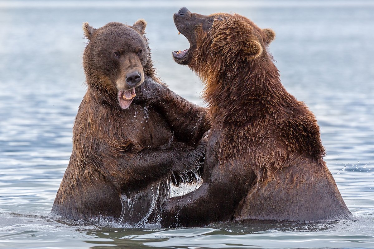 Можно подумать, что медведи что-то не поделили, но на самом деле они просто играются.