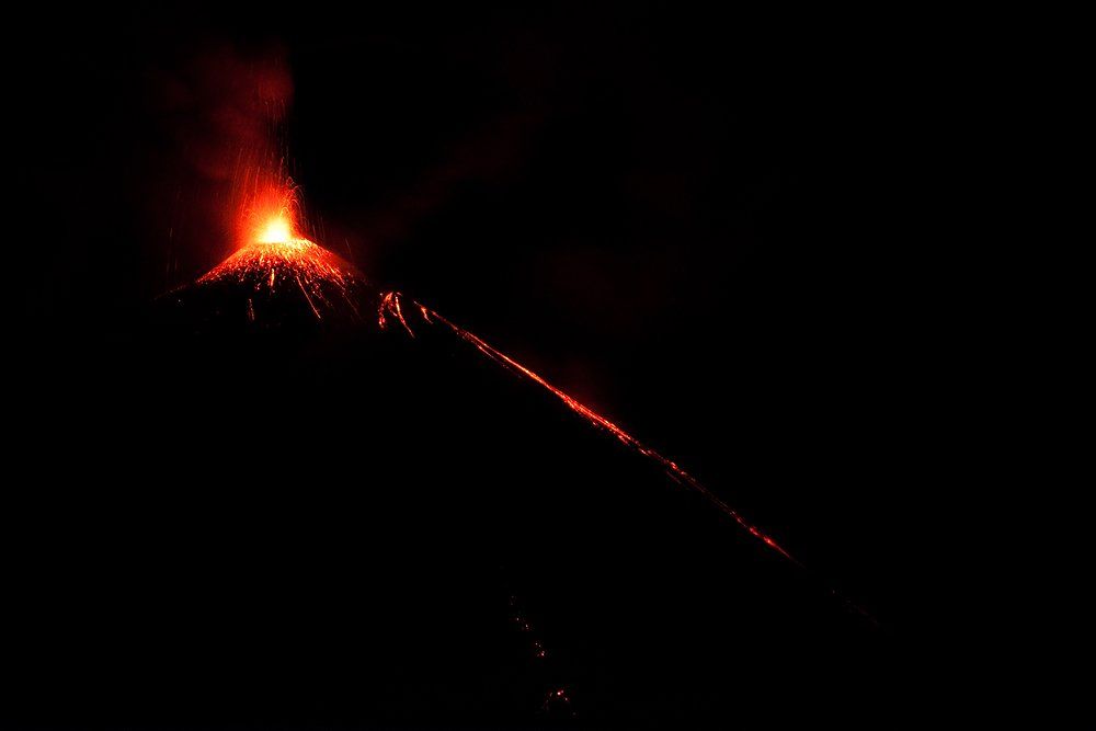 Это первый кадр, сделанный мной на съемках извержение вулкана Ключевская сопка (4750 м.) в сентябре этого года. В эту ночь вулкан выбрасывал раскаленную магму на высоту до 300 метров. На снимке также виден лавовый поток, стекающий по ее склону до высоты примерно в 2000 м. Но чуть позже появился второй лавовый поток стекающий левее. Днем он достиг ледника «Эрмана» и начал его топить, это было невероятное зрелище.
