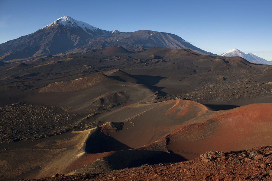 От вершины вулкана «Плоский Толбачик» на расстояние до 25 км идет большой разлом, через который периодически происходят извержения. При этом образуются побочные кратеры. На Толбачике их насчитывают больше двухсот. Они то и образуют весь этот Марсианский ландшафт.