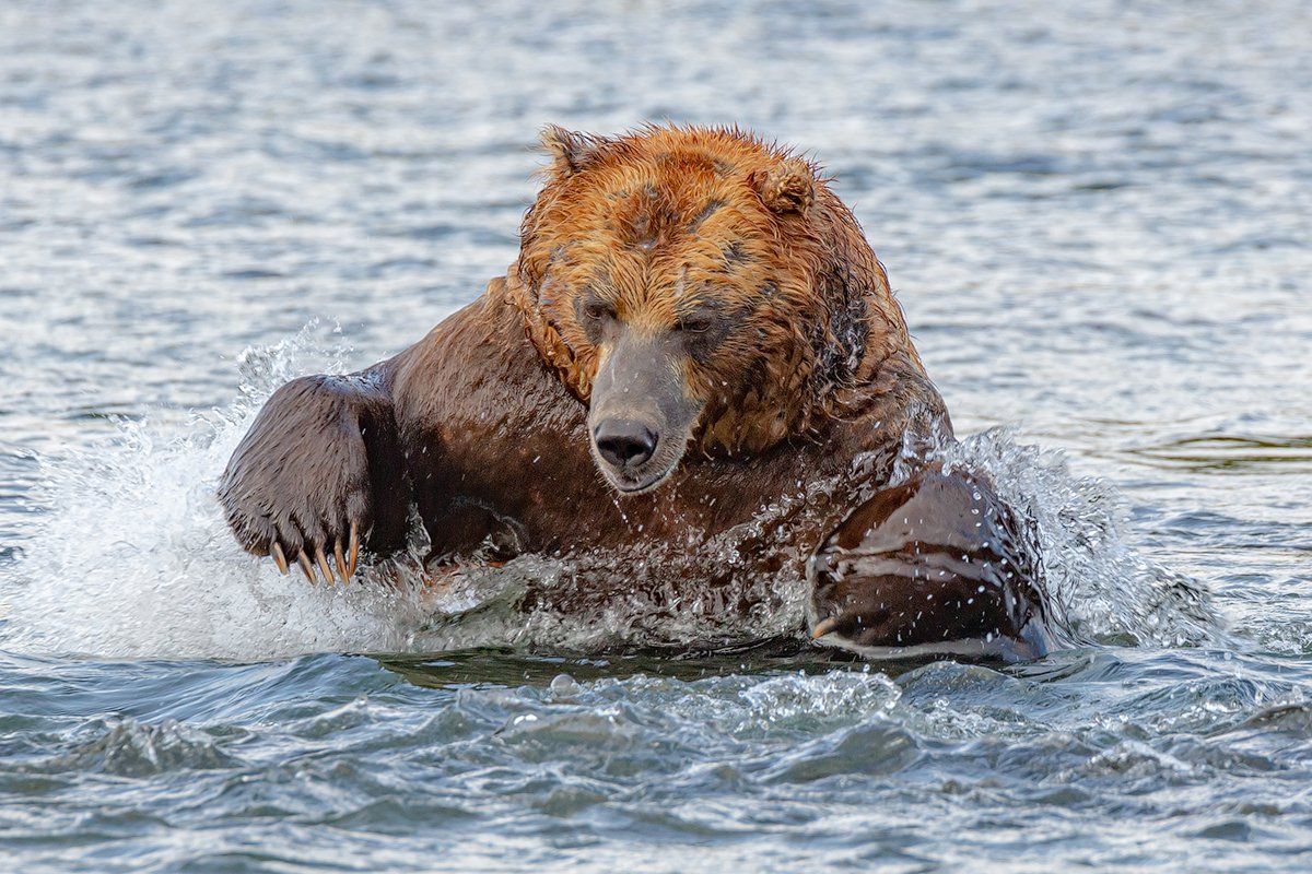 Камчатский бурый медведь во время рыбалки на Курильском озере.