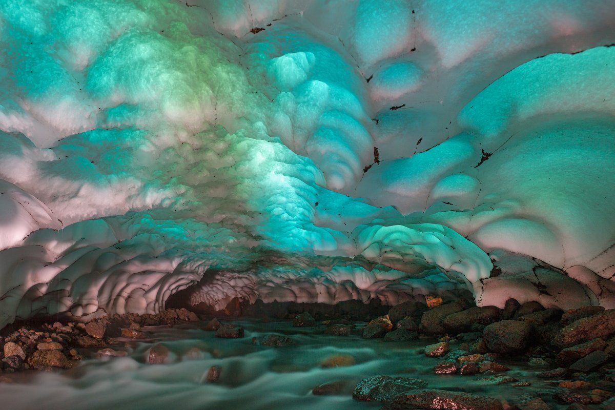 Снежная пещера на склонах вулкана мутновский
