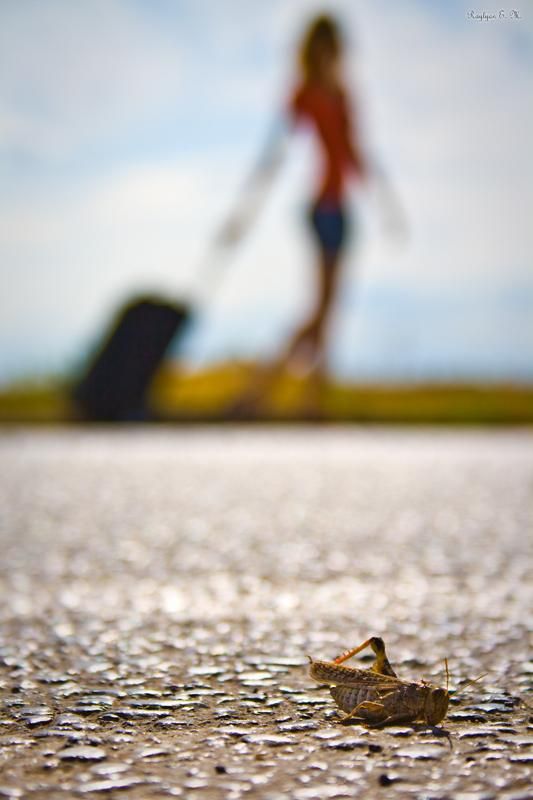 к сожалению я и так лежал на земле... а такое дробление обусловленно перспективой, это 4х полосная дорога и девушка идет по обочине а несчастная саранча лежала с другой ее стороны. Большое спасибо за внимание к работе