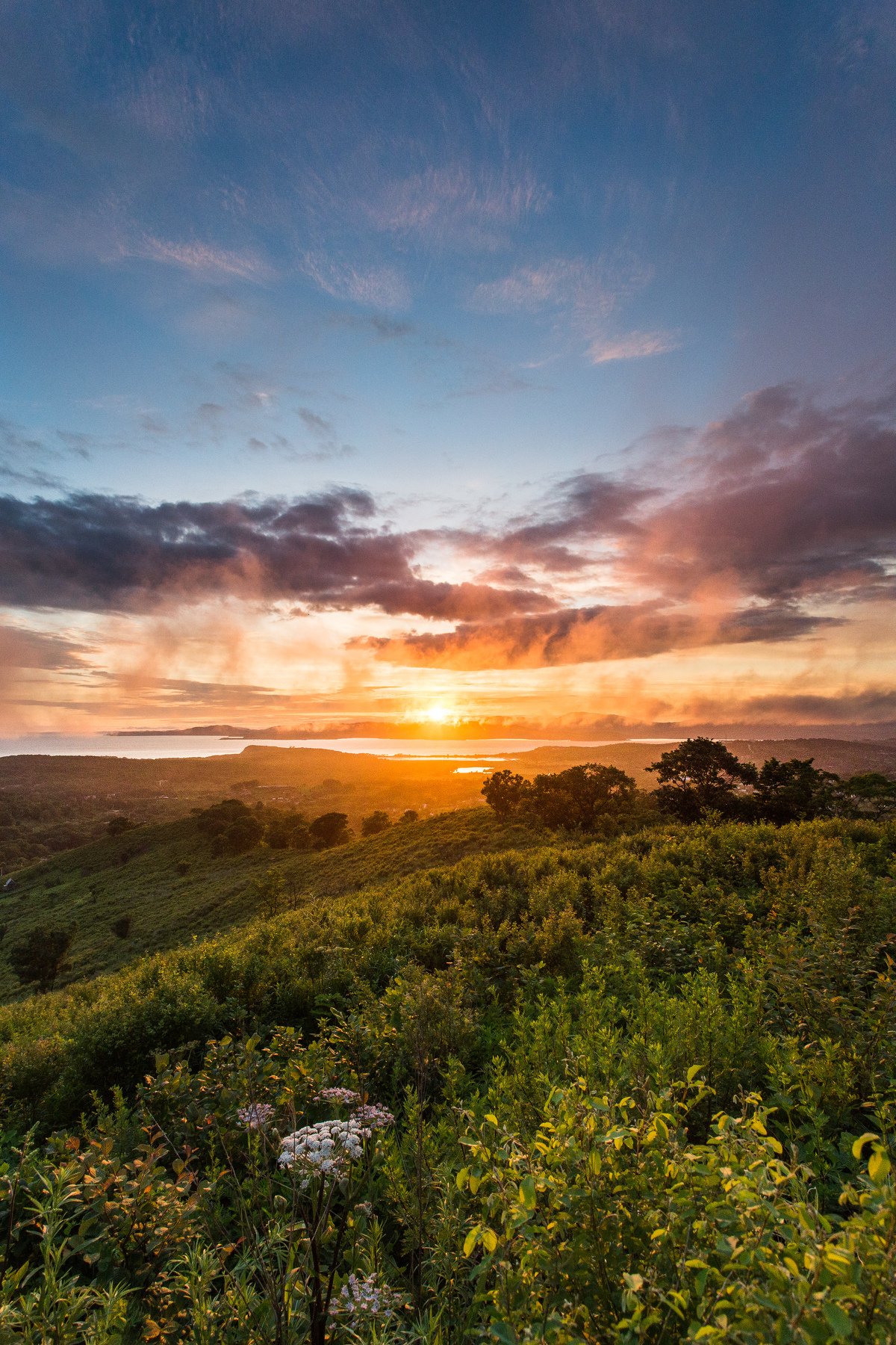 закат, небо, солнце, облака, море, цвет, свет, сопки, лес, деревья, туман, высота, Alexey