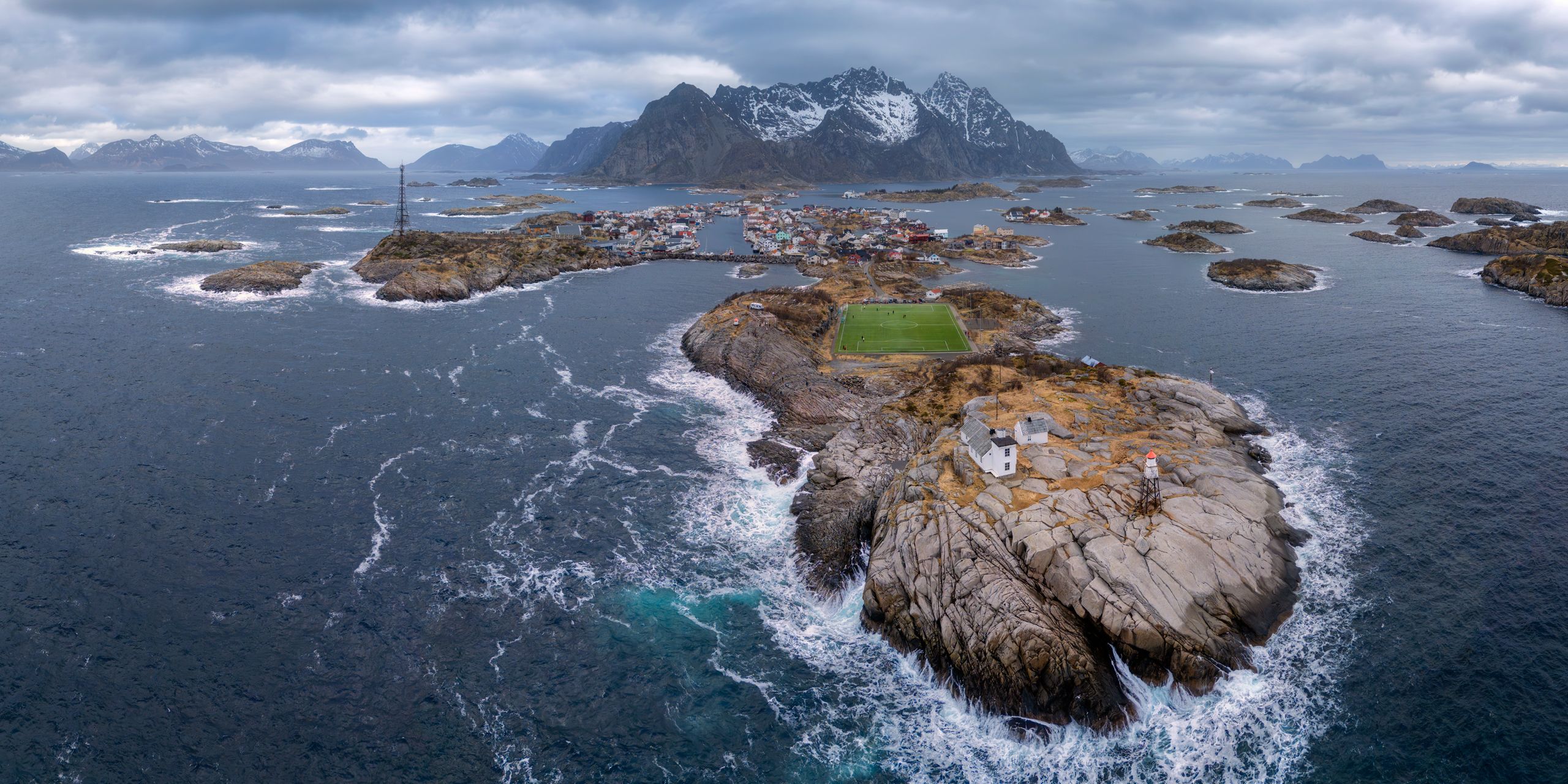 Футбольное поле Хеннингсвера — одно из самых живописных мест для игры. На широте 68°, сразу за Полярным кругом, оно расположено на крошечном острове архипелага Лофотен в Норвегии — в окружении моря и суровых гор вместо привычных стадионных ограждений. Ни трибун, ни толпы — только сушки для трески, океан и чистый футбол на краю Арктики.