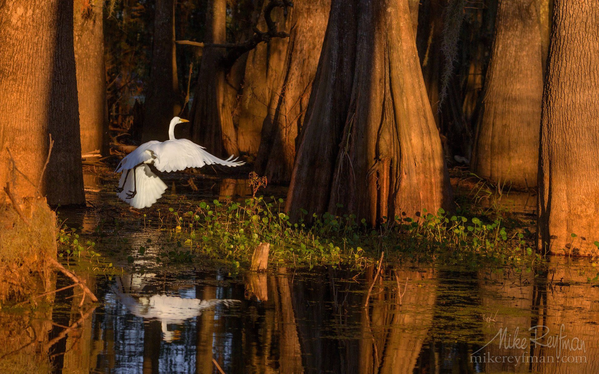Кипарисовые болота - волшебное место. Ну а когда между деревьев еще и цапли летают, оно становится просто завораживающими.
