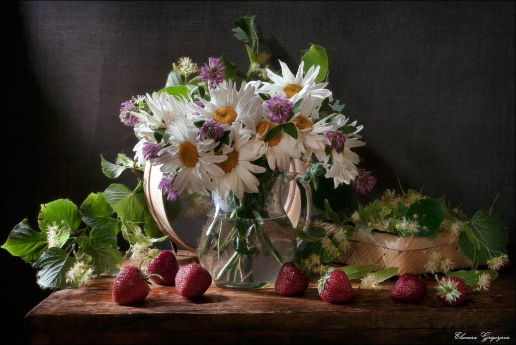 Жара, Клубника, Лето, Липов цвет, Натюрморт, Ромашки, Сито, Eleonora Grigorjeva
