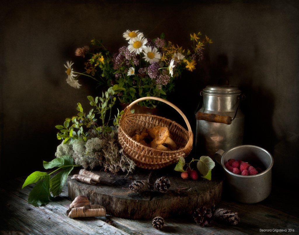 Грбы, Лестница, Лисички, Малина, Натюрморт, Тихая охота, Цветы, Черника, Ягоды, Eleonora Grigorjeva