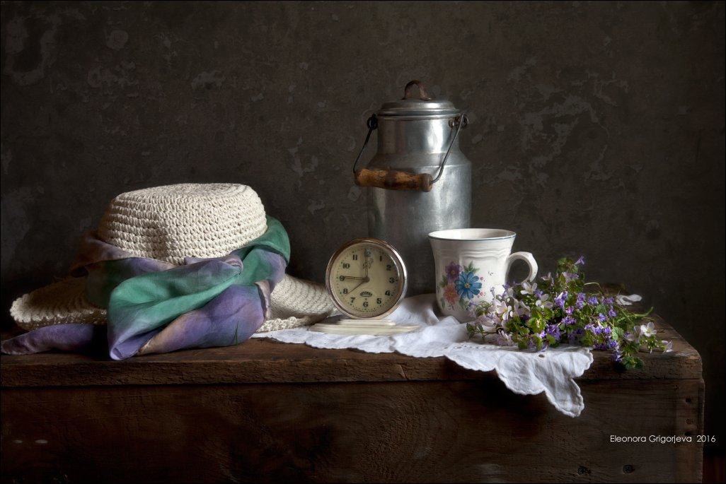 бидон, будильник, весна, натюрморт, часы, Eleonora Grigorjeva