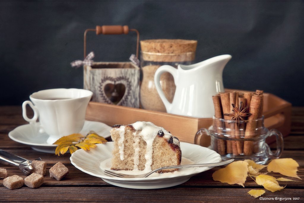 натюрморт, пирог, яблоки, мороженое, осень, листья, корица, чай, Eleonora Grigorjeva