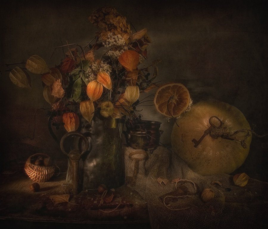 А это как раз эксперименты со световой кистью, если мой огромный фонарик, который я ладонью прикрываю, так можно назвать). Тыква чуть подсвечена сзади-сбоку другим фонариком. Я не умею свет ставить вообще, так что делаю штук 15 снимков, ионгда бывает, накладываю два друг на друга и смешиваю слои, чтобы лучше было освещено). Читала Ваши совета по работе со световой кистью, и теперь пытаюсь что-то изобразить)