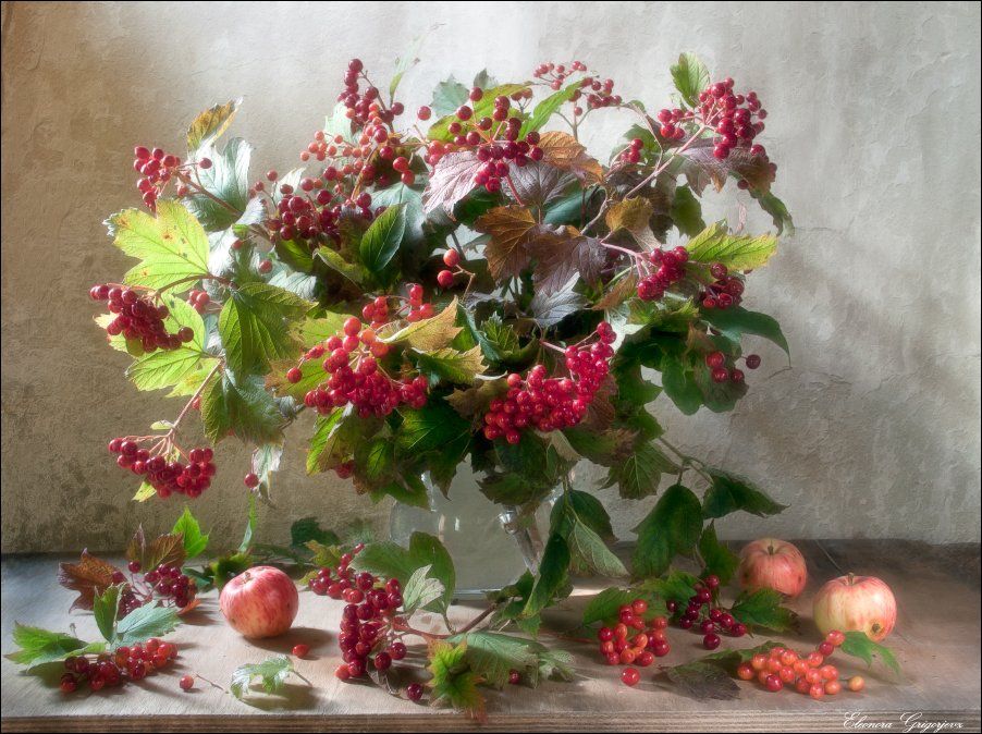 калина, натюрморт, яблоки, Eleonora Grigorjeva