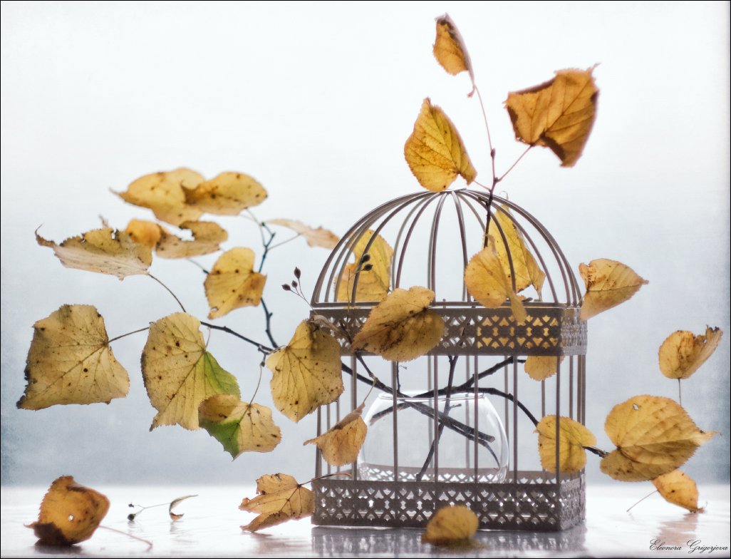 ветер, клетка, натюрморт, осенние листья, осень, жёлтые листья, гелиос, Eleonora Grigorjeva