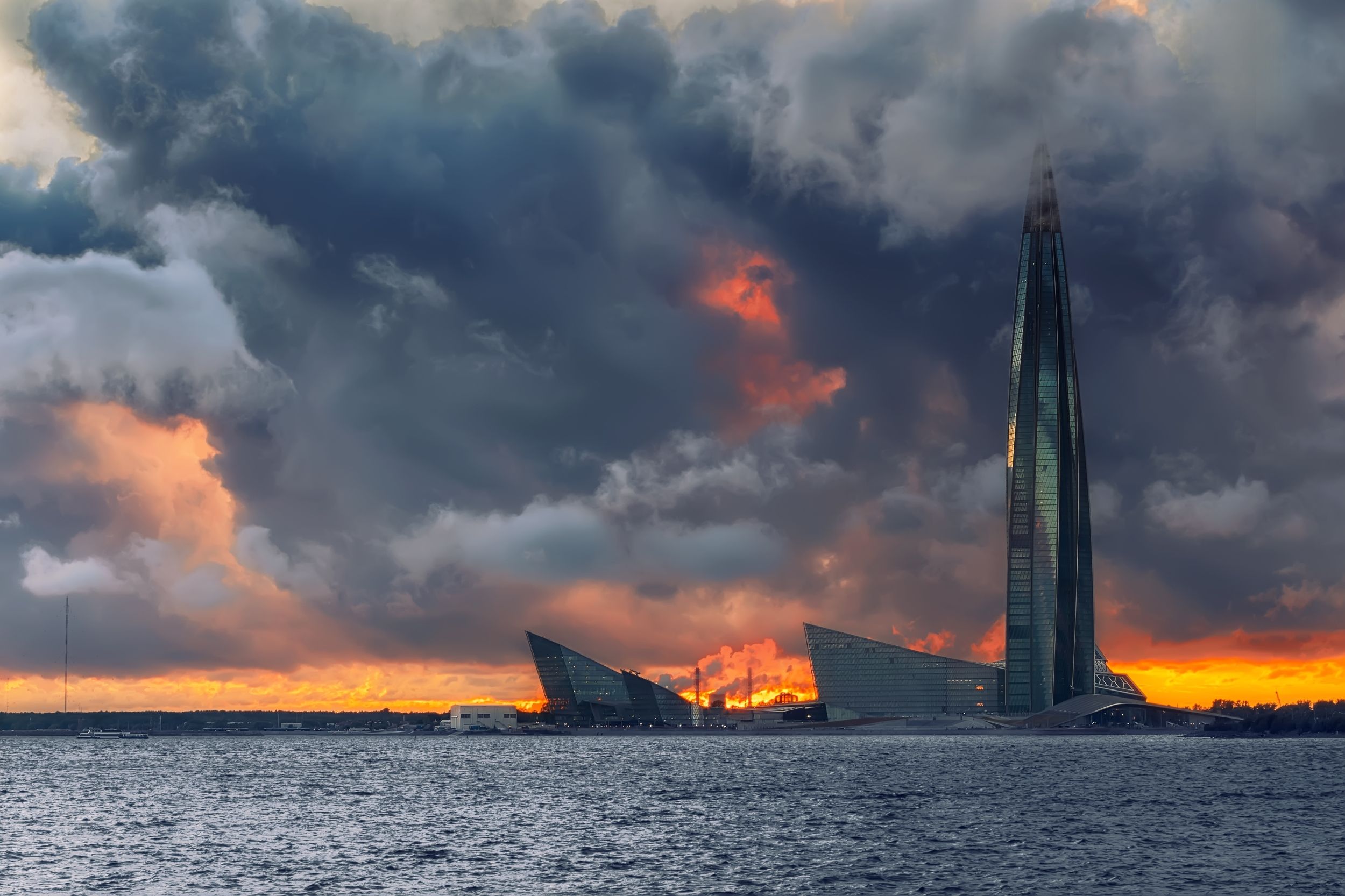 город море вечер закат небо облака ненастье архитектура башня, Тамара