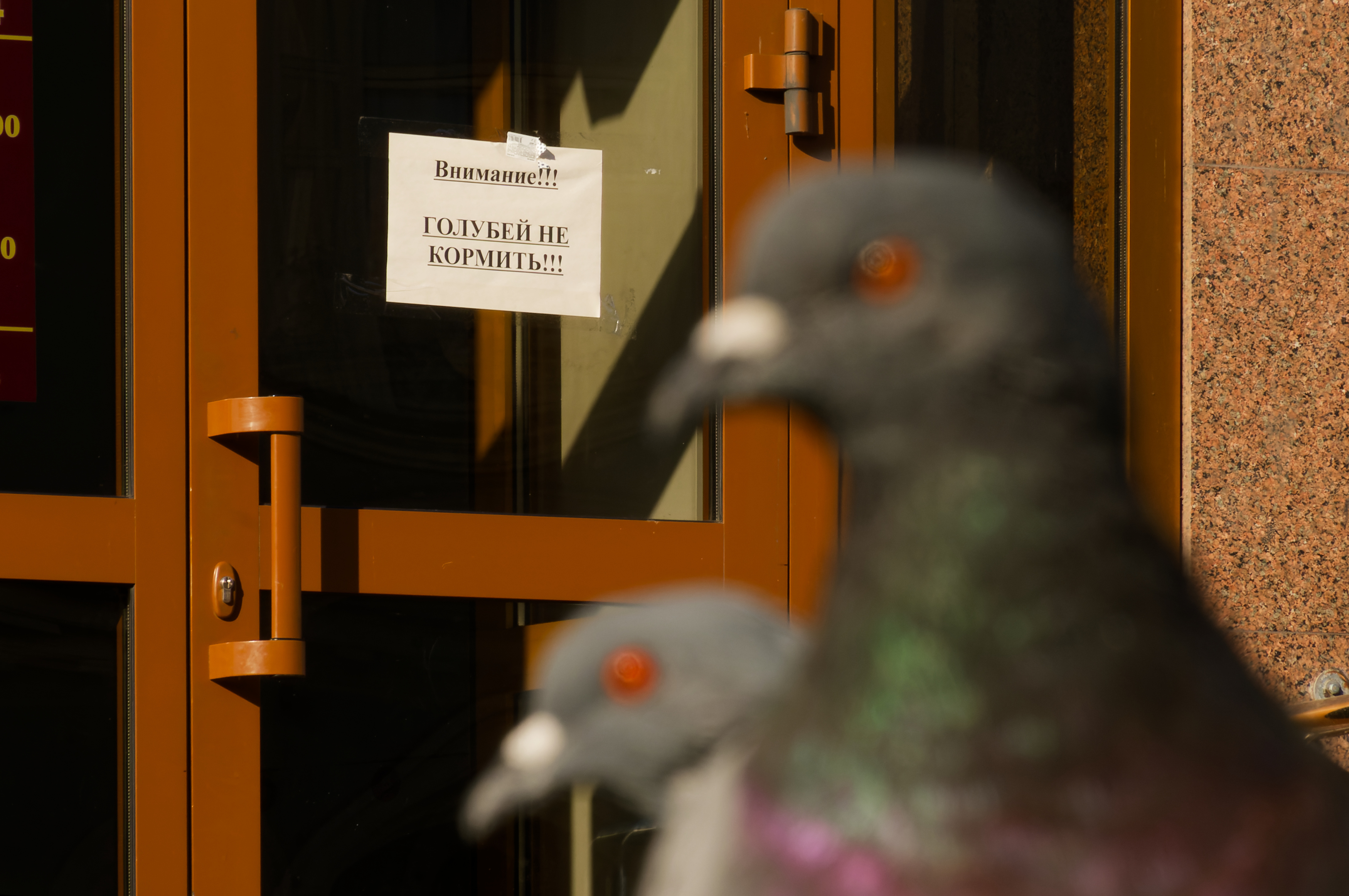 )) надо бы два кадра сделать с резкостью на голубей и объявлением, а потом соединить