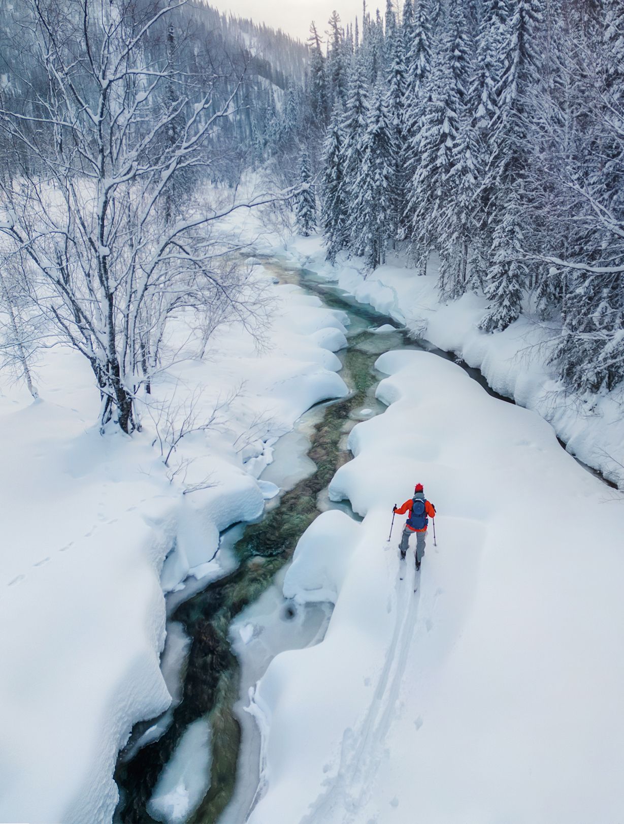Снег, лыжы, река, лужба, тайга, лес, Василеня Роман