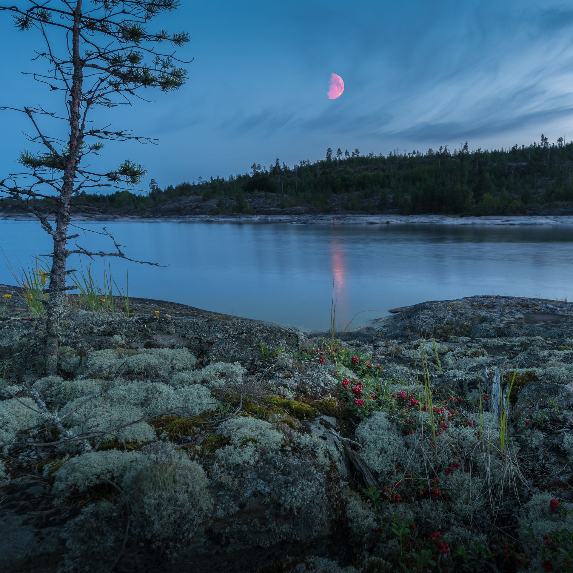 ладога, карелия, брусника, сумерки, луна, Роман Фабричный
