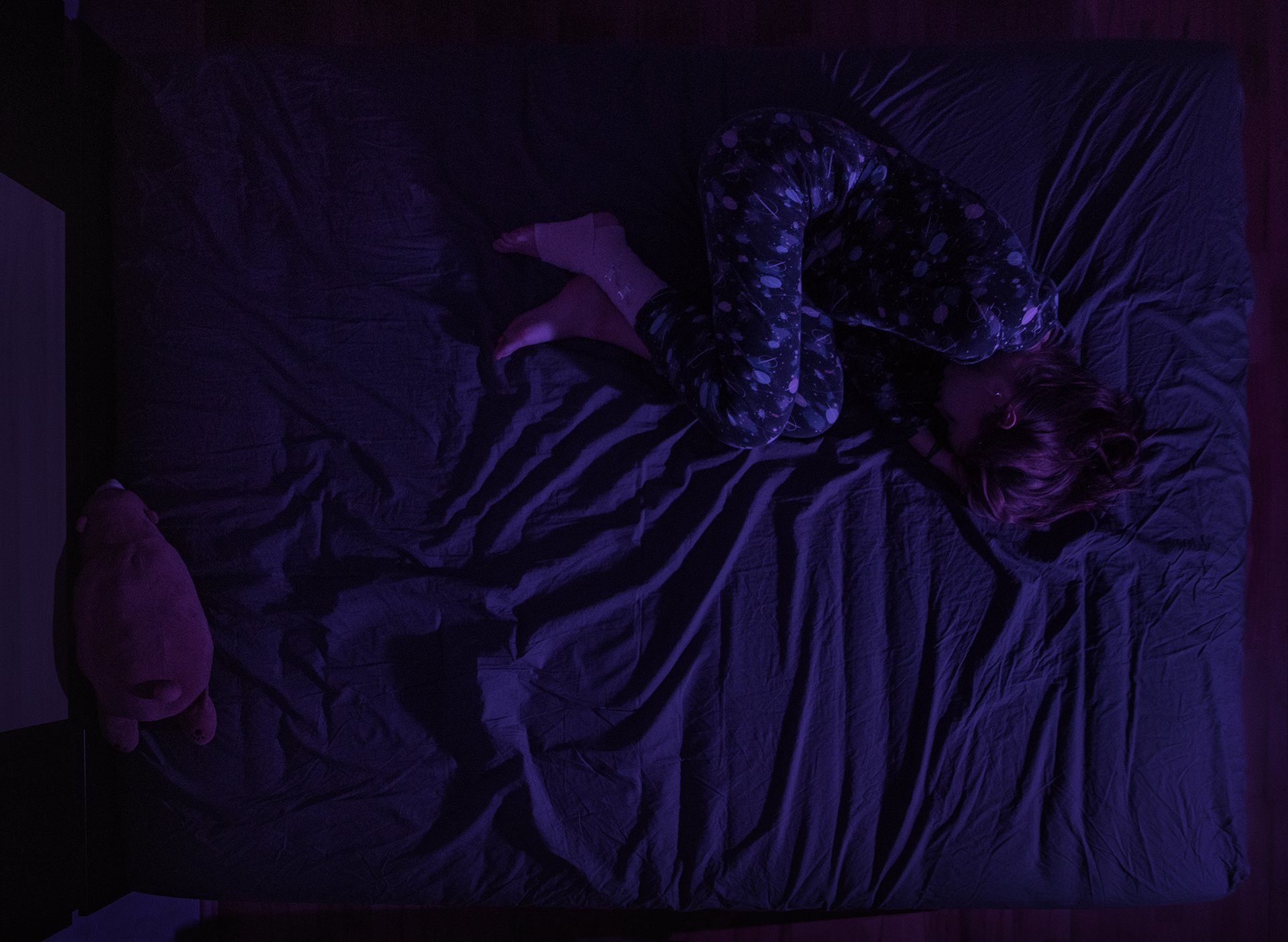 girl, at home, sad, sadness, sorrow, purple, night, pajamas, toy, moscow, Роман Филиппов