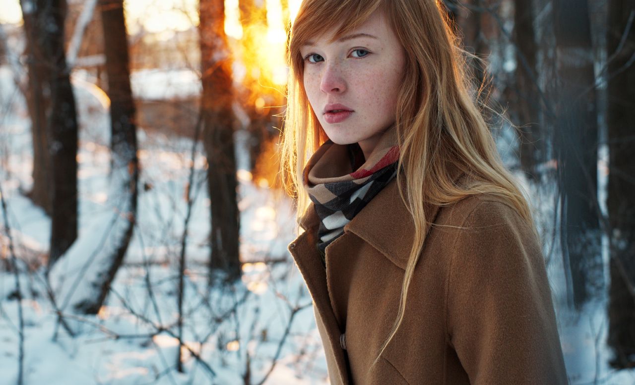 ColdFrecklesGingerGirlHairPortraitRedRussiaRussianSnowSunSunsetWinterYoung
