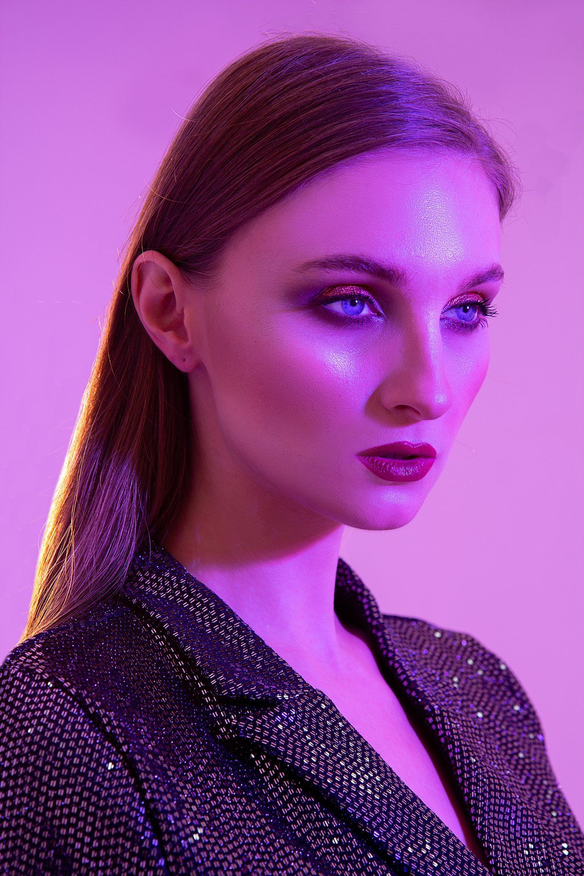 цветной свет, женский портрет, фотостудия, портрет в фотостудии, Анна Михайлова