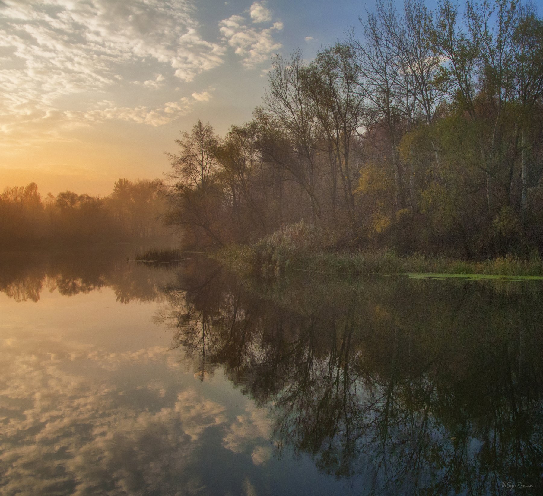 осень,утро,рассвет,река,берег,лес,туман, Roma  Chitinskiy